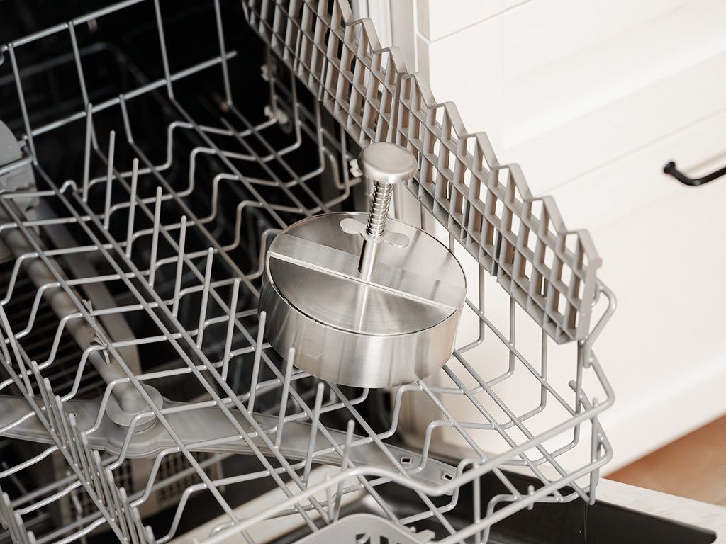 Gänzlich aus hochwertigem Edelstahl gefertigt, ist diese Burgerpresse gebaut, um die härtesten Zutaten zu bewältigen, von dicken Fleischpatties bis hin zu kompakten gefüllten Burgern, alles mit müheloser Leichtigkeit. Ihre robuste Konstruktion garantiert, dass sie die Zeit überdauert, was sie zu einer dauerhaften Ergänzung Ihres Küchenarsenals macht.