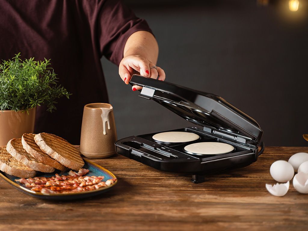 Verwenden Sie sie für goldene Pfannkuchen, perfekt gebratene Eier oder geröstete Bagels - genau so, wie Sie sie mögen. Die Antihaftbeschichtung lässt Speisen leicht lösen, ohne anzukleben oder zu zerbrechen - selbst bei klebrigen Zutaten. Perfekt, wenn Sie etwas Warmes, Einfaches und Zufriedenstellendes ohne Aufwand möchten.