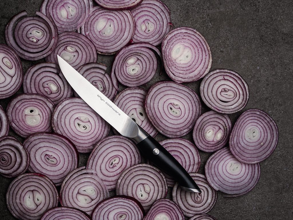 Wie der Name schon sagt, ist das ONYX COOKWARE™ Universalmesser nützlich in fast jeder Kochsituation. Und deshalb benötigen Sie einfach ein gutes Universalmesser in Ihrer Küche.