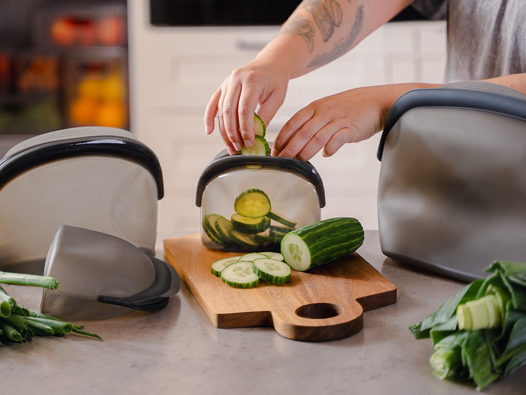 Lernen Sie den ONYX COOKWARE™ SILIKON-AUFBEWAHRUNGSBEUTEL kennen - eine bessere, langlebigere und praktischere Art, Lebensmittel aufzubewahren. Die wiederverwendbaren Silikonbeutel wurden entwickelt, um all die undichten, unpraktischen Lösungen zu ersetzen, mit denen wir uns viel zu lange herumgeschlagen haben. Schluss mit Chaos. Schluss mit Verschwendung. Hier kommt zuverlässige Aufbewahrung, die jedes Mal funktioniert.