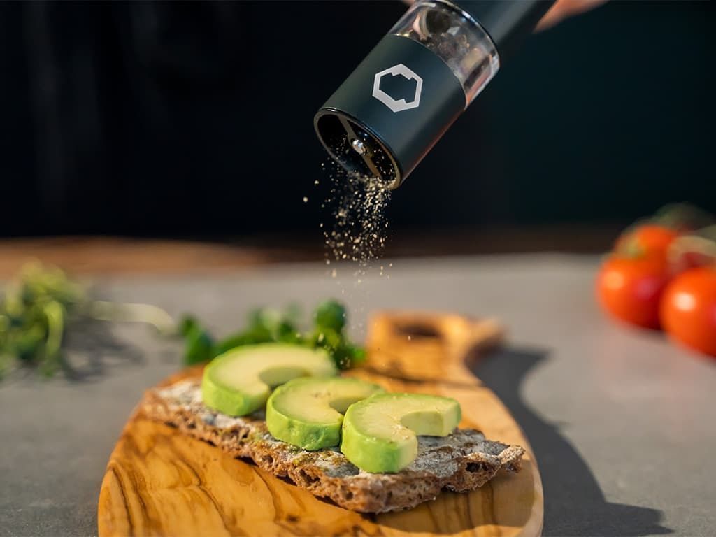 Wir stellen die ONYXCOOKWARE™ ELEKTRISCHE MÜHLE vor. Eine innovative Salz- und Pfeffermühle, die für
