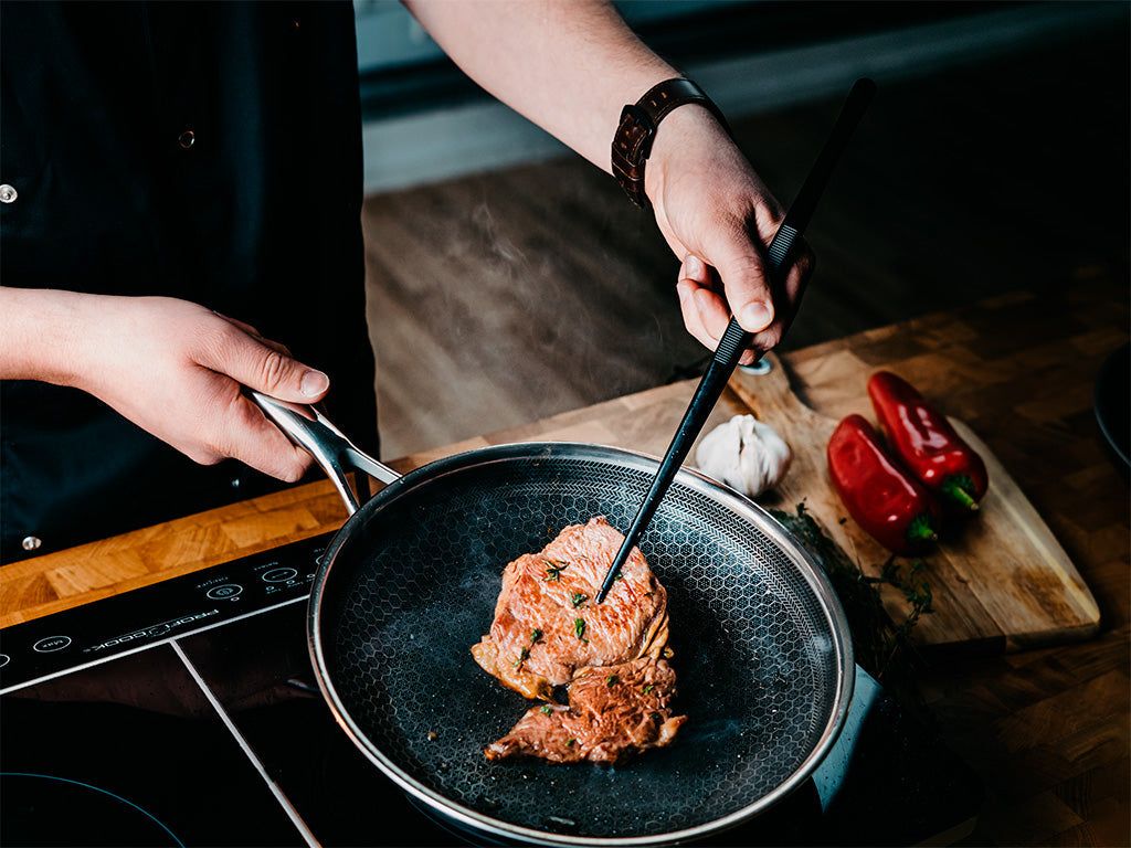 Die ONYX COOKWARE™ PINZETTE ist sehr vielseitig und kann für fast jede Situation verwendet werden. Ob Sie grillen, anbraten, sautieren oder frittieren, die Pinzette ist perfekt zum Handhaben und Wenden von Speisen in einer Pfanne, einem Topf oder einem Grill.