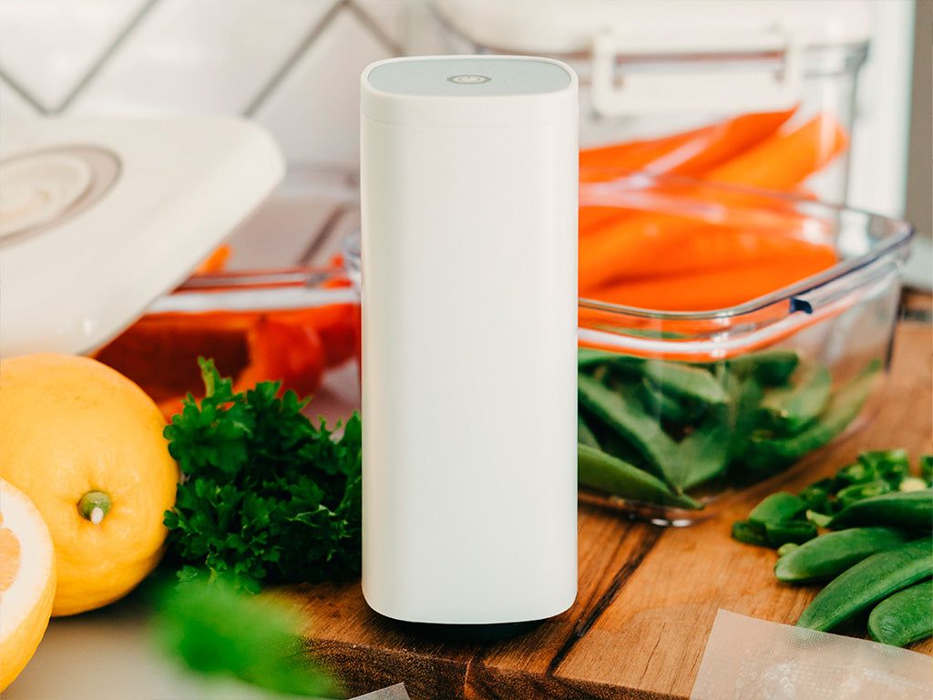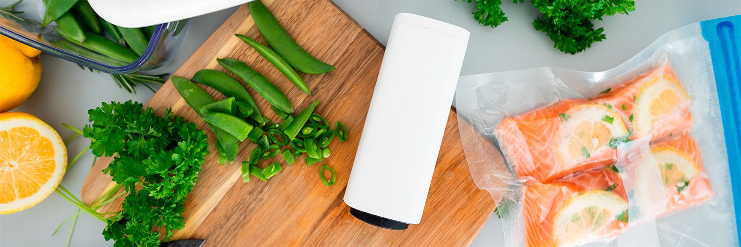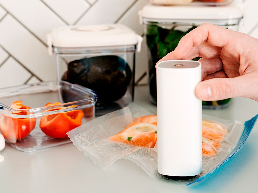 Die meisten von uns haben schon das Vakuumieren versucht, da dies mit Abstand die beste Möglichkeit ist, Lebensmittel länger haltbar zu machen, ohne sie einzufrieren – und selbst beim Einfrieren ist Vakuum ein klarer Vorteil. Aber ein normales Vakuumiergerät zu verwenden, ist leider nicht sehr praktisch. Sie benötigen ein riesiges Vakuumiergerät , das Sie in Ihrem Schrank finden und dann an die Steckdose anschließen müssen. Dann müssen Sie Ihre Vakuumbeutel finden und das Gerät verwenden, um das Vakuum zu erzeugen und den Beutel zu versiegeln, indem Sie im Grunde den Kunststoff schmelzen. Wir hatten selbst so ein Gerät – aber irgendwann blieb es einfach im Schrank, einfach weil es so lästig und umständlich zu bedienen war.