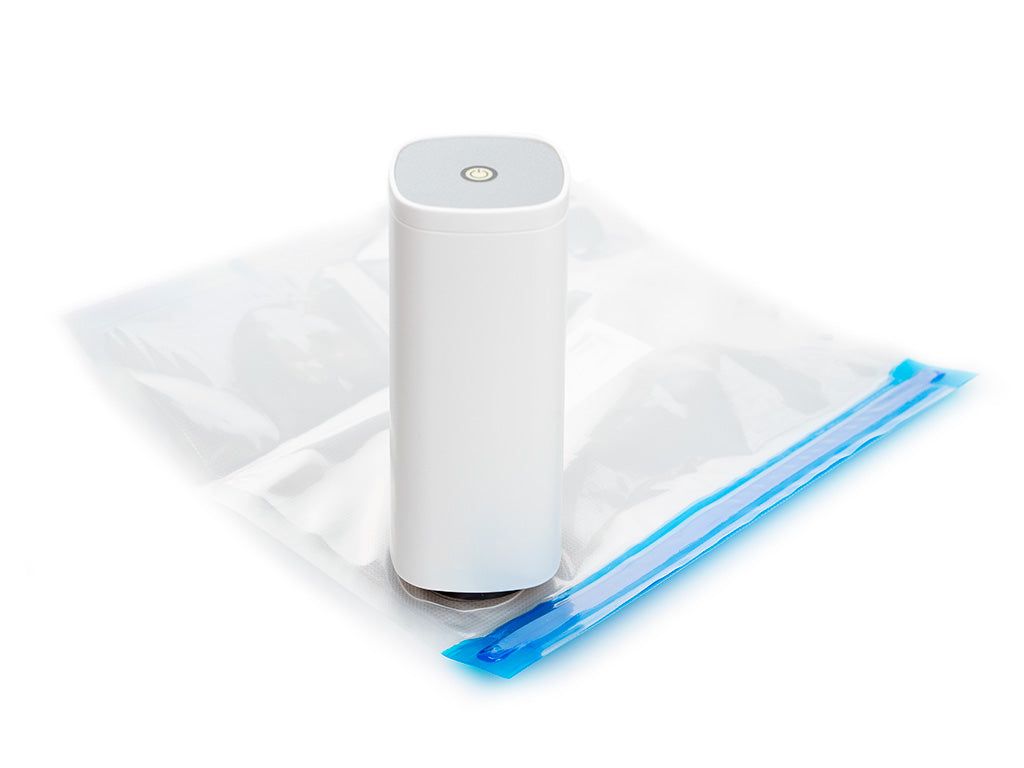 Vergessen Sie also komplizierte Prozesse, um Ihre Lebensmittel zu vakuumieren. Tun Sie einfach das, was Sie normalerweise tun würden – nur ein kurzer Druck auf den Knopf unserer Vakuumpumpe – und schon sind Ihre Lebensmittel vakuumversiegelt.