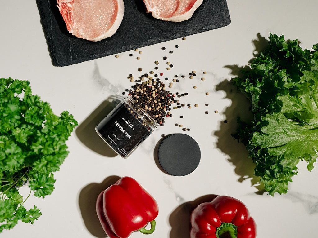 Erleben Sie die Vielseitigkeit von ONYX COOKWARE™ PFEFFER MIX, während sie die Aromen Ihrer Lieblingsrezepte bereichert. Ihre ausgewogene Kombination von Pfeffersorten ermöglicht es Ihnen, kulinarische Meisterwerke zu kreieren, die eine Vielfalt von Geschmacksrichtungen verkörpern.